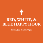 Calvary’s Fellowship Committee is hosting a Red, White, and Blue Happy Hour on July 21 from 4:30 pm to 6:30 pm. Wear red, white, and blue or come as you are. All are welcome!