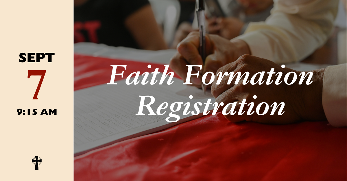 From 9:15 am to 10:15 am, bring your kids, young and old, to register for Faith Formation in Breckenridge Hall! This promises