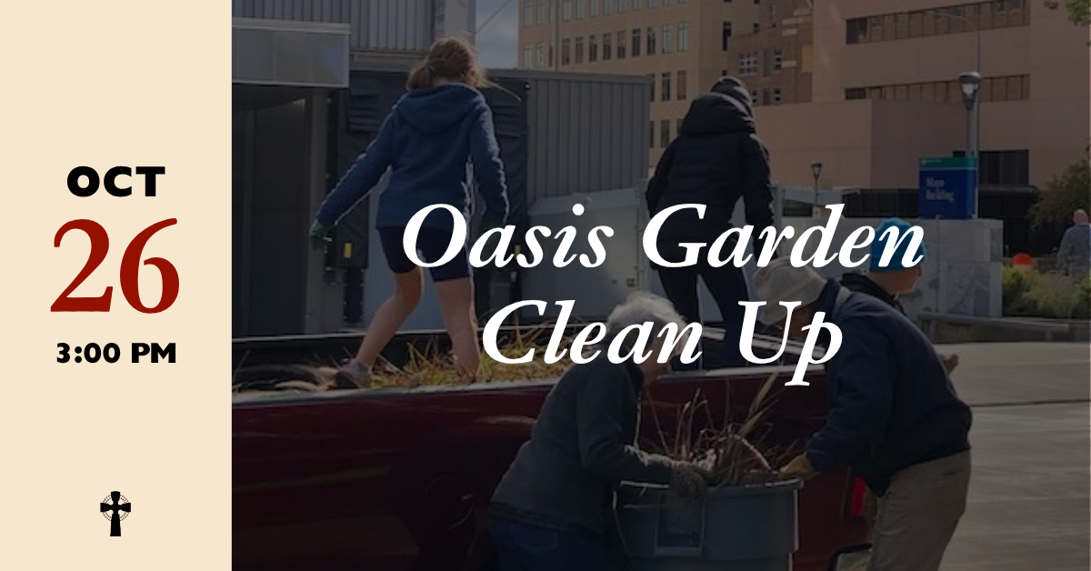 On Sunday, October 26, from 3 to 4 pm, Calvary youth and adults are invited to help put the Oasis Garden to