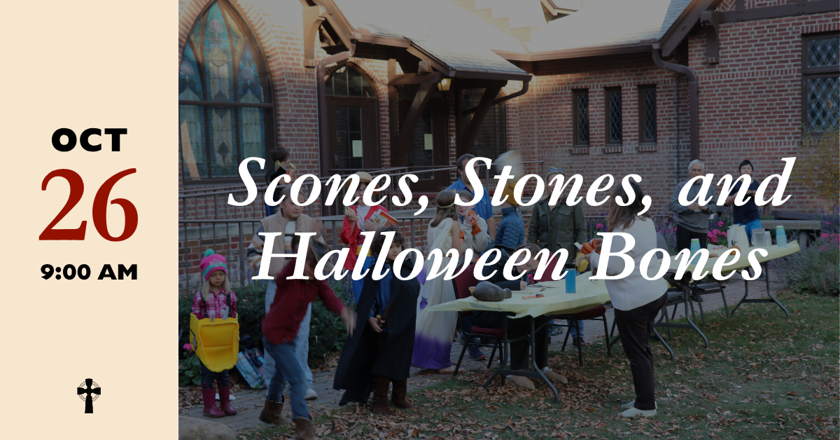 Calvary Scones, Stones, and Halloween Bones, aka Eat, Compete, and Dress Up Sunday, October 26, from 9:00 to 10:30 in the courtyard