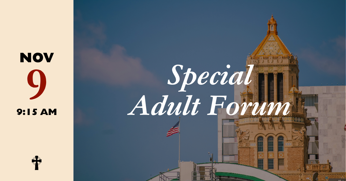 All are invited to the adult forum at 9:15 am in Crawford Hall on Sunday, November 9. Our guest will be Erin